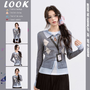 2025秋季新款韩版复古气质设计感小众印花长袖T恤修身显瘦上衣女