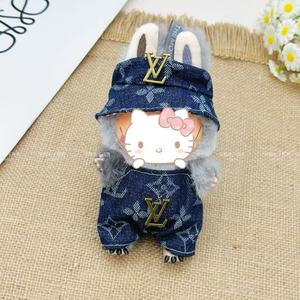 新款17cm拉布布娃衣套装背带裤渔夫帽T恤牛仔裤娃衣公仔玩偶换装