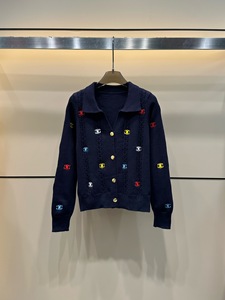 25早秋新款小香风彩色凯旋门刺绣翻领开衫 套头毛衣