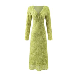 2025秋季新款女装法式复古气质修身V领长袖收腰印花连衣裙