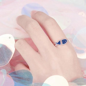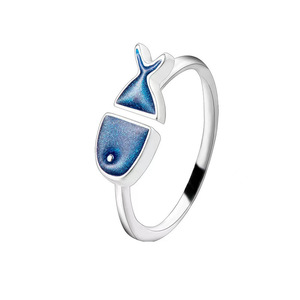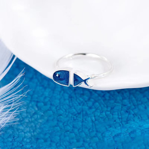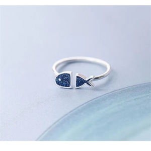 日系轻奢镀银蓝色小鱼滴釉许愿戒指女ins潮食指不掉色开口可调节