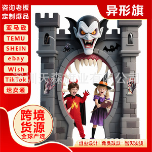 万圣节吸血鬼城堡异形旗欧美跨境室内外装饰拍照节日背景激光切割