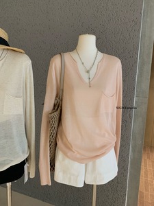 【WGWE】6647早秋新款慵懒防晒罩衫V领长袖针织衫宽松休闲上衣女