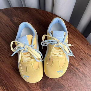 红色小众苹果德训鞋女款2025春秋新款透气百搭丑萌圆头板鞋阿甘鞋