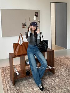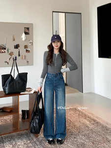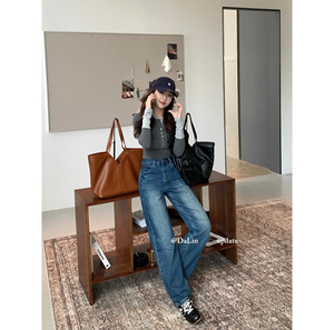 DUOXINIU/多喜牛/DaLin早秋上新窄版阔腿裤女高腰牛仔裤垂坠显高