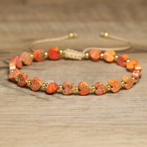 天然七彩爱心帝皇石编织可调节手链精致女式手链冥想手链饰品