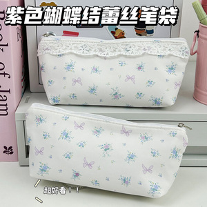 新款简约小清新碎花蕾丝边笔袋ins高颜值文具铅笔袋少女心收纳袋
