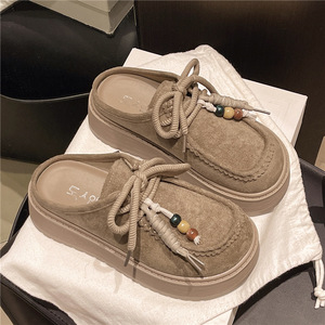 2025秋新款磨砂皮厚底包头半拖鞋增高外穿舒适低帮勃肯鞋子袋鼠鞋