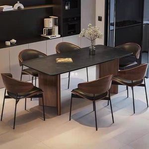 复古风黑胡桃色实木餐桌椅组合侘寂风长方形小户型岩板中古餐桌