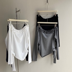 25秋季女装新款蕾丝拼接露肩长袖针织衫女甜辣风上衣5218