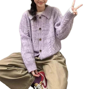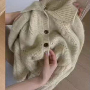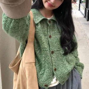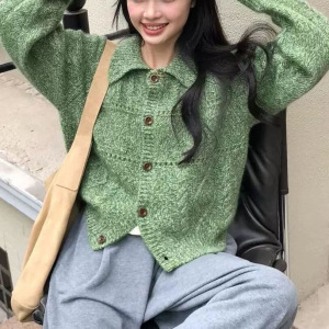 2025秋冬新款小个子韩版宽松显白显瘦温柔文艺翻领针织开衫外穿女