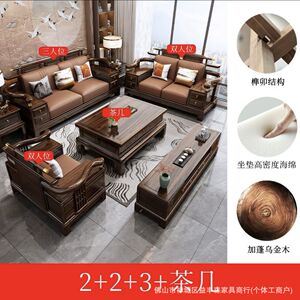 新中式乌金实木沙发组合别墅客厅现代高端冬夏两用大户型储物家具