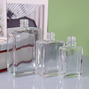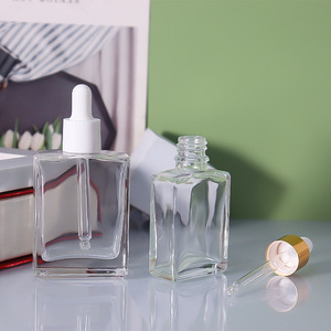 厂家现货50ml透明扁方瓶30ml玻璃精华液瓶化妆品滴管瓶分装精油瓶