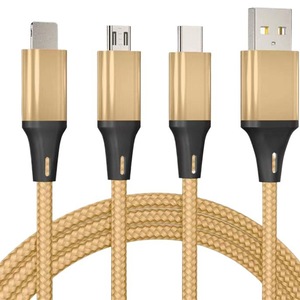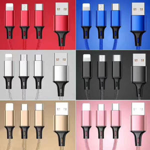 适用苹果安卓华为多头一拖三手机数据线三头合一尼龙编织充电线