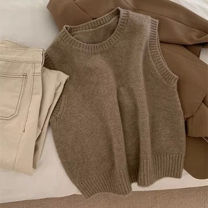 早秋叠穿无袖羊毛圆领套头马甲针织衫上衣女复古新款韩版坎肩毛衣