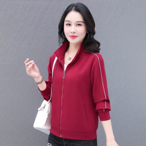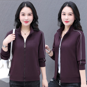 高棉中年妈妈装拉链开衫夹克外套女春秋宽松遮肉立领休闲长袖卫衣