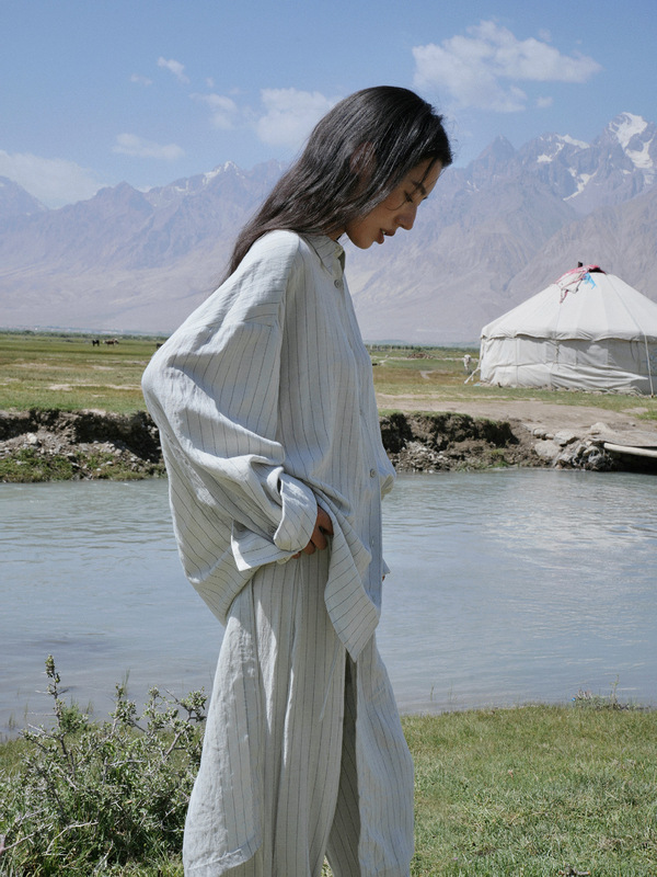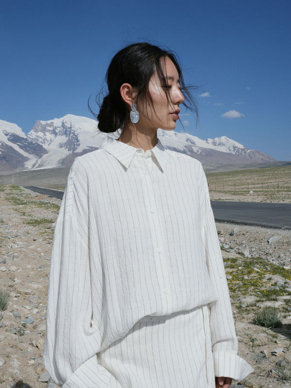 2025棉麻条纹亚麻宽松极简高级感衬衣女秋季新款252567