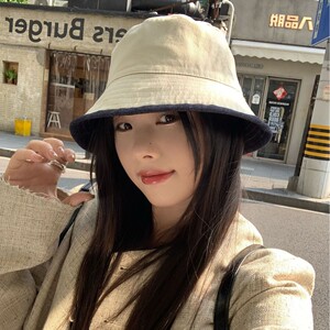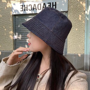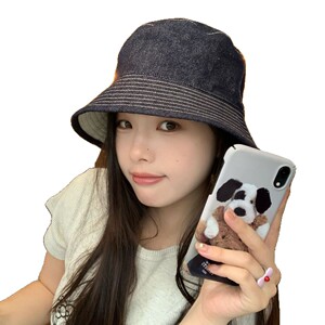 日系复古双面可戴牛仔渔夫帽女夏季显脸小百搭水桶帽遮阳防晒盆帽