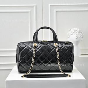 25A小香风手工坊Maxi保龄球包菱格链条包牛皮女士手提单肩斜挎包