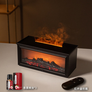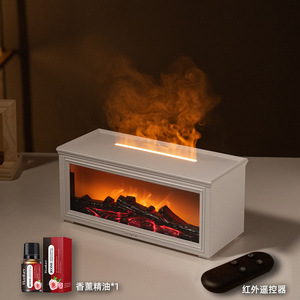 壁炉香薰机3D仿真火焰氛围灯精油创意小型家用跨境木纹空气加湿器