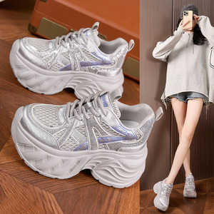 厚底内增高老爹鞋女2025秋季新款网面鞋子超轻软底女鞋休闲运动鞋