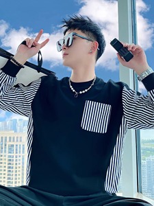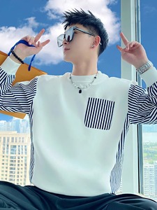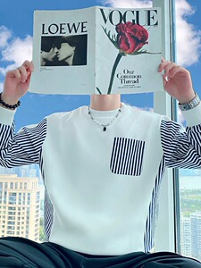 条纹拼色卫衣男士春秋季2025新款潮牌痞帅百搭长袖打底衫外套