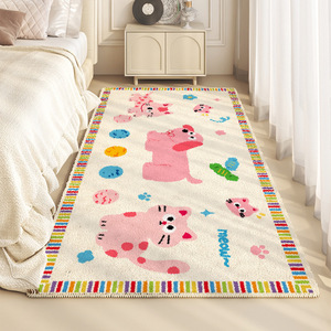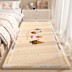地毯卧室卡通耐脏易打理仿羊绒地毯家用异形儿童房隔凉床边毯可定