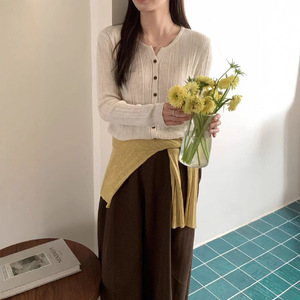 韩系温柔!2025秋新款v领显瘦纯色百搭单排扣设计休闲针织开衫女