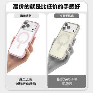 磁吸款透明不发黄iphone苹果16手机壳防摔15Promax超薄简约手機殼