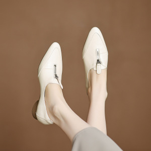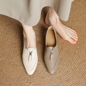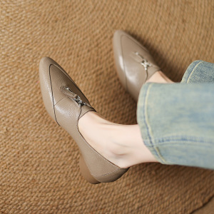 小皮鞋2025春季女鞋尖头粗跟低跟时装鞋外贸大码40-41前拉链单鞋