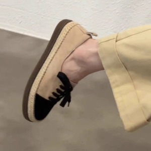 羊皮版~法式小香风一脚蹬渔夫鞋女2025新款外穿休闲时尚系带单鞋