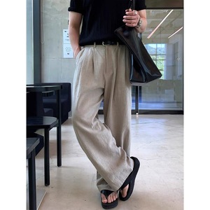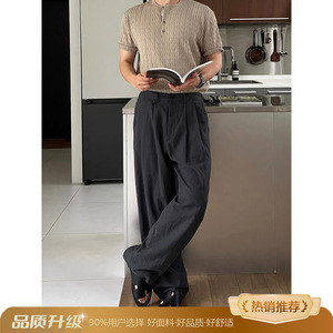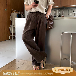 老钱风卡其色亚麻休闲裤男夏季薄款垂感宽松阔腿裤百搭直筒长裤子