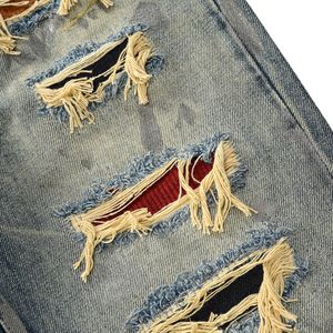 正阳秋季新品牛仔裤重工水洗多色布混合拼接破洞补丁直筒男牛仔裤