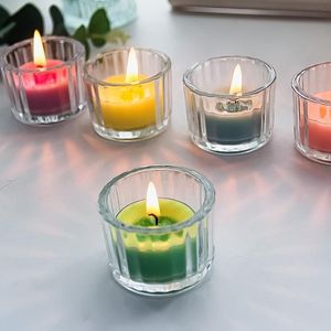 透明玻璃蜡烛杯香薰烛台杯卧室香薰杯竖纹蜡烛杯耐高温光影杯批发