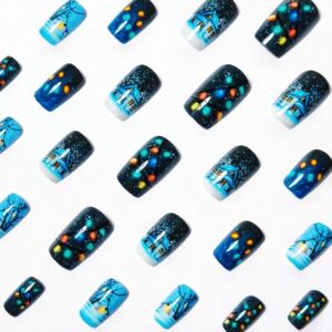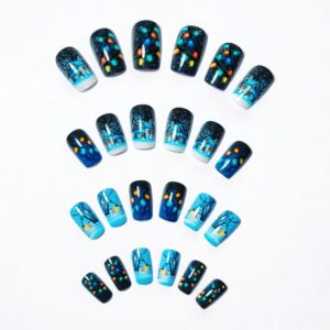 24片圣诞节氛围穿戴甲雪花圣诞树美甲雪屋假指甲白色雪花假甲片盒