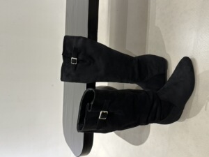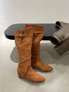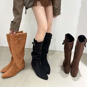 2025年秋冬新款内增高尖头绒面褶皱堆堆靴骑士靴高筒靴皮带扣长靴