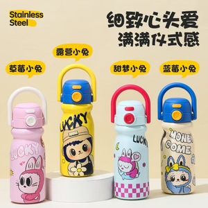 新款316不锈钢儿童保温杯大容量卡通双饮吸管杯高颜值大肚杯批发