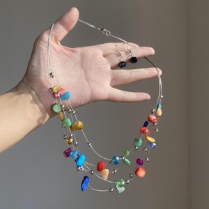 彩色碎石多层项链耳钉套装