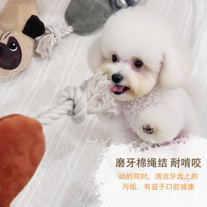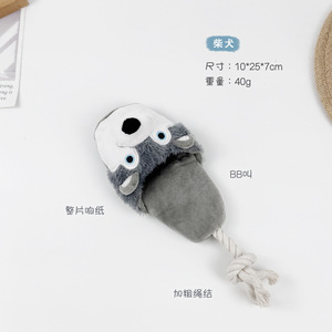 跨境日韩仿真拖鞋毛绒发声狗玩具响纸棉绳结泰迪巴哥自嗨宠物用品