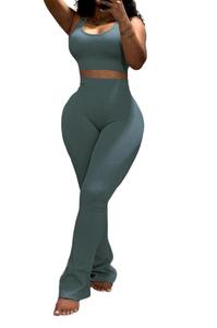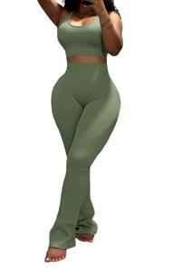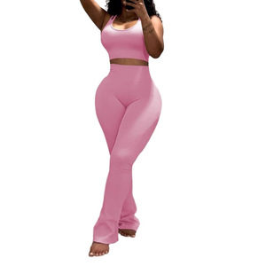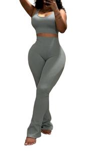 欧美瑜伽收腹提臀速干跑步休闲吊带小背心紧身喇叭裤运动套装百搭