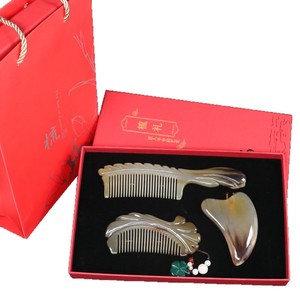 天然加厚牦牛角梳子礼盒套装厂家直销批发可刻字印LOGO教师礼物