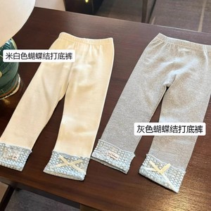 女宝宝韩版拼接格子蝴蝶结打底裤2025秋季新款中小童女童外穿长裤