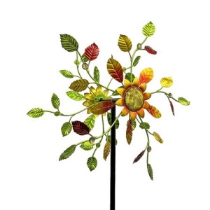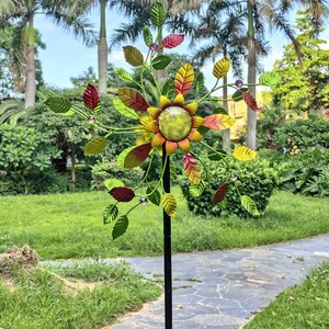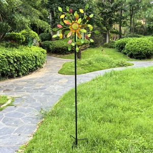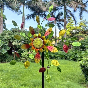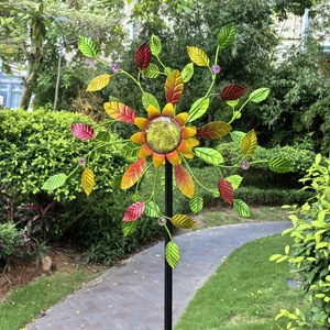 户外铁艺风车摆件多彩渐变枝叶花朵风车随风转吸睛装饰花园工艺品