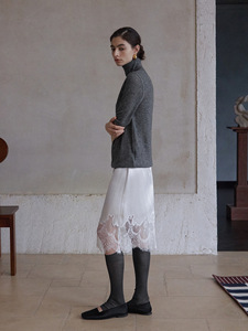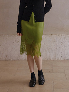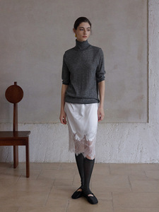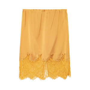 [共线]COLNE秋季新款通勤设计感缎面蕾丝刺绣花边醋酸半裙女C5345