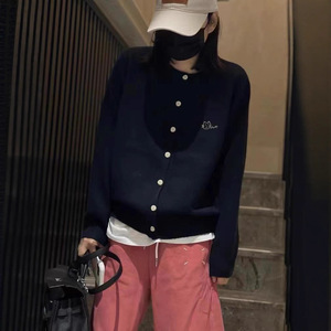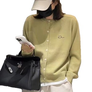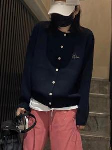 花倾慕刺绣小猫开衫外套女2025秋季外搭休闲针织衫百搭长袖上衣灰