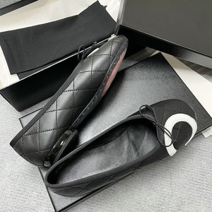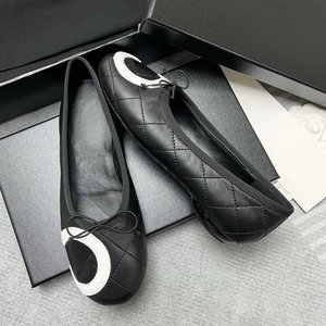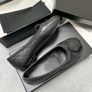 纯原级!欧美新款小香风中古蝴蝶结菱格浅口女鞋芭蕾舞鞋平底单鞋