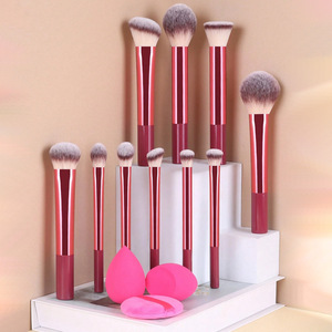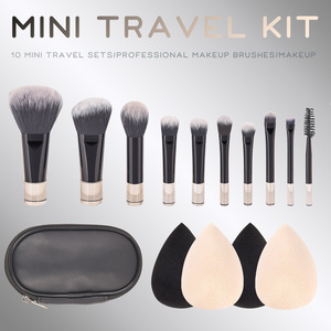 跨境新款初学10支迷你化妆刷套装水晶柄便携粉底刷眼影刷送刷包
