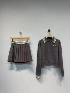 南油女装m家25早春新款字母徽标贴饰学院风polo领短款针织衫毛衣