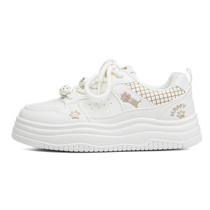 女鞋软底不累脚皮面可爱少女小白鞋2025年新款厚底显高百搭板鞋女