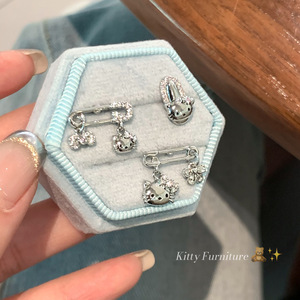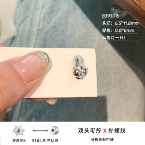 316L钛钢铜镀金微镶KT猫吊坠别针耳钉养耳洞耳蜗钉耳骨钉钛钢耳饰